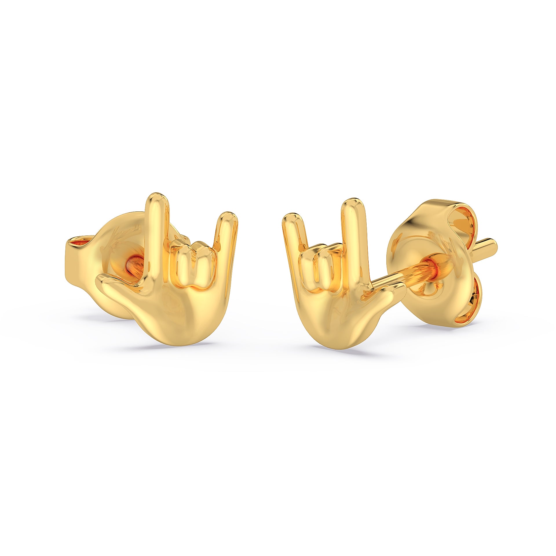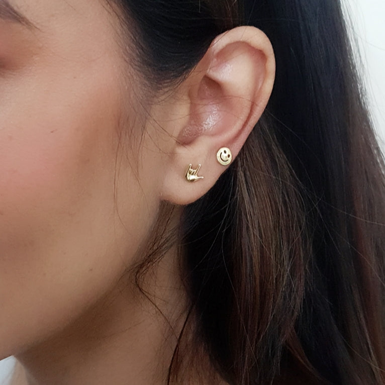 Spread some love with i love you hand emoji ear studs- perfect to add some style and fun to your wardrobe.
