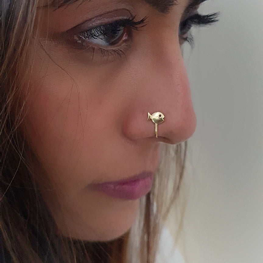 Adore the trend of animal love fashion with this pretty little fish nose pin.