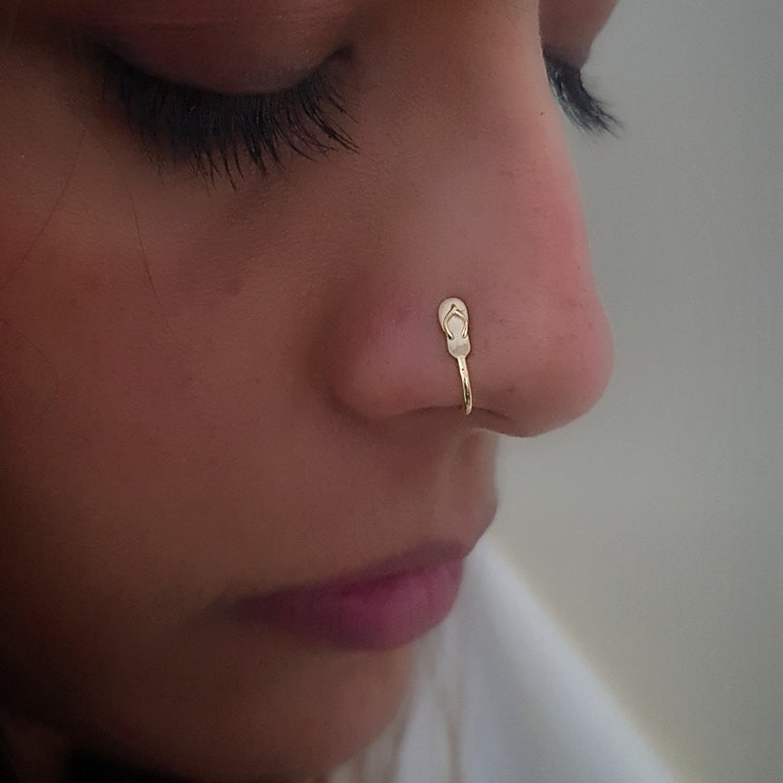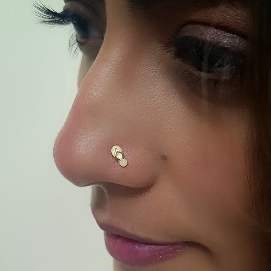 The 3d petite flip flop nose pin , a quintessential symbol of beach fun, to keep the relaxing days of vacation on top of your mind along with the thought of slipping into something casual.